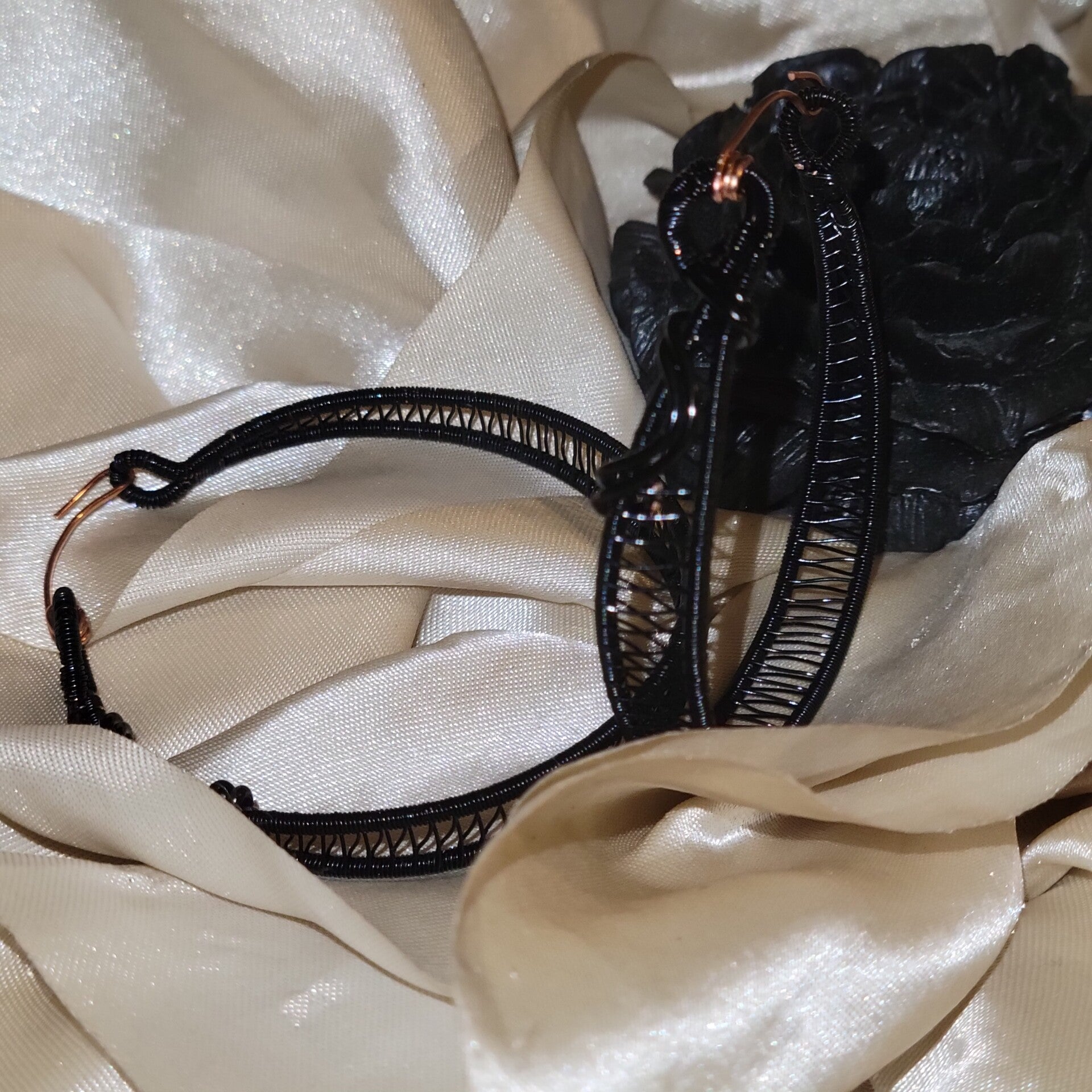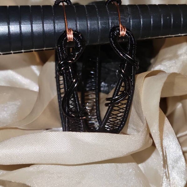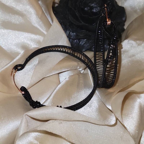 Black colored Copper wrapped hoop earrings