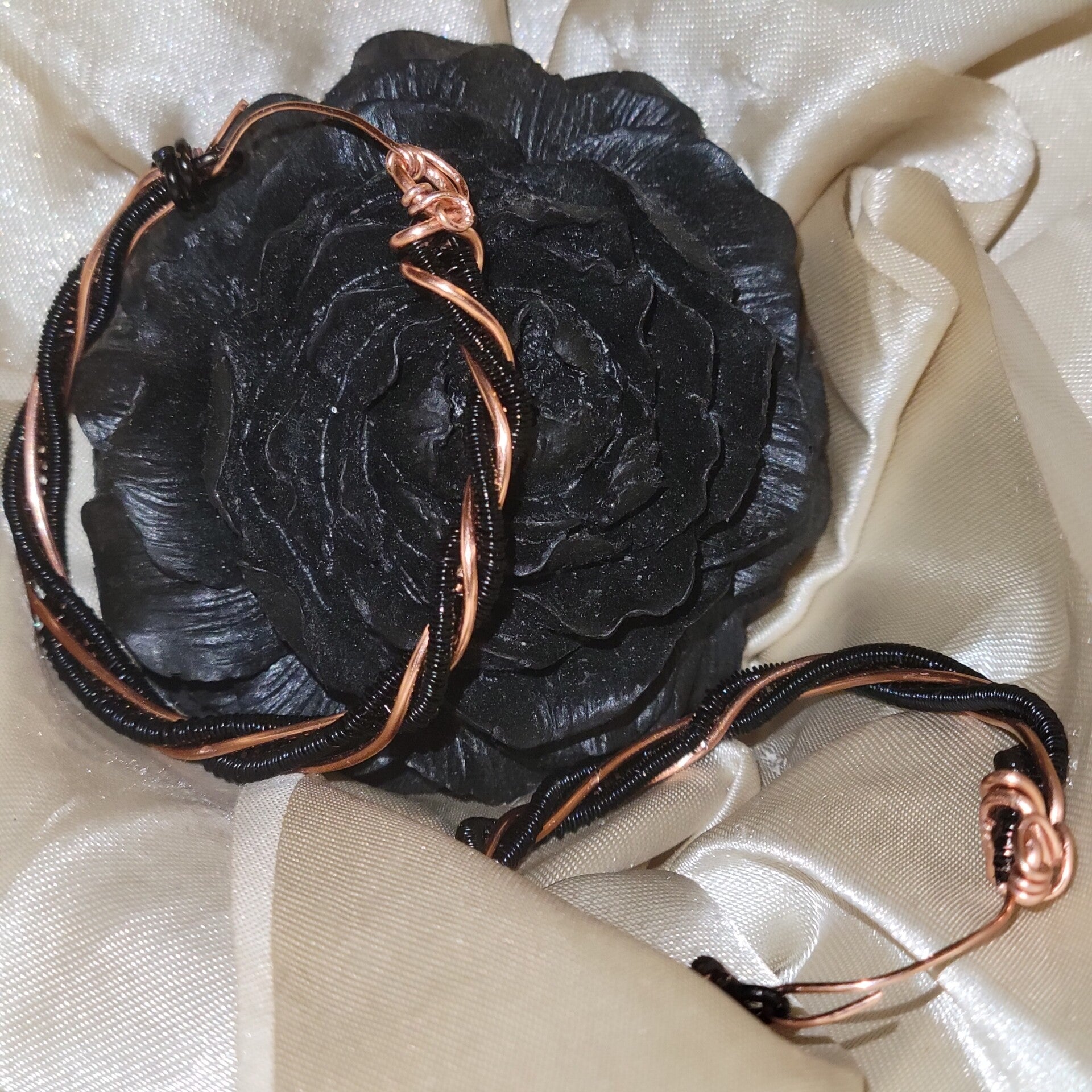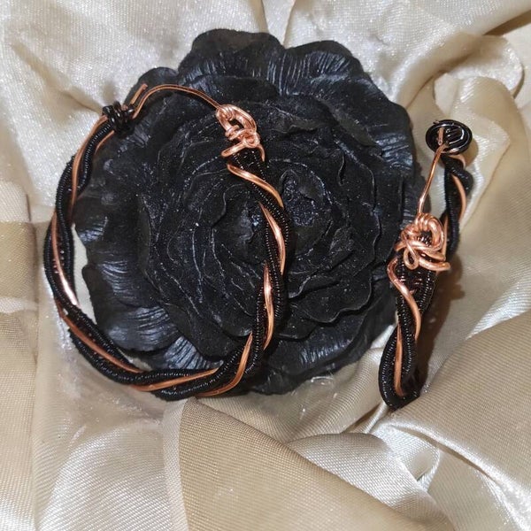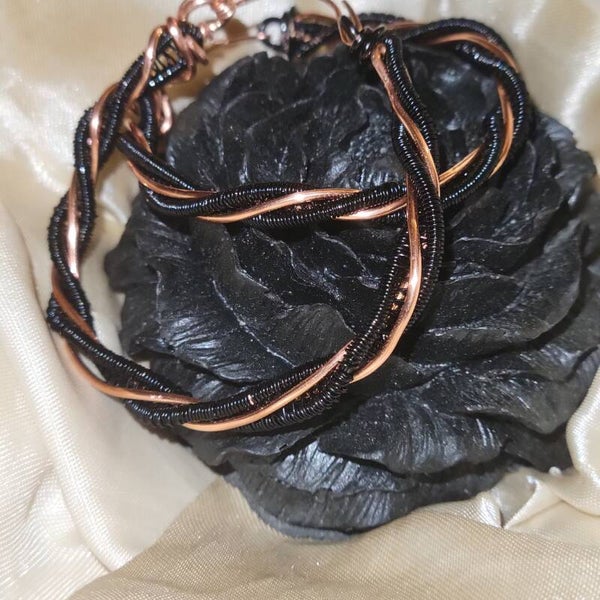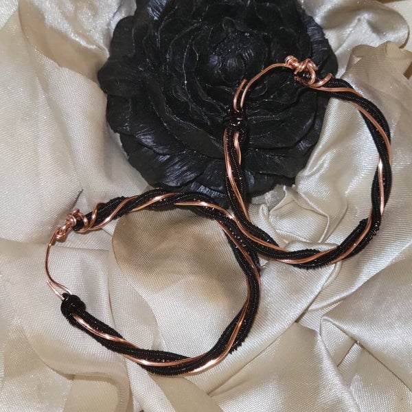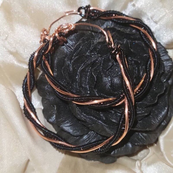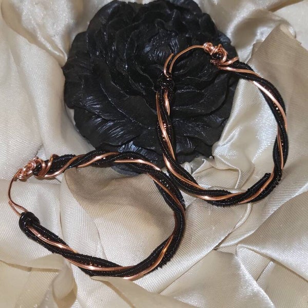 Black coated copper on copper twisted hoops earrings
