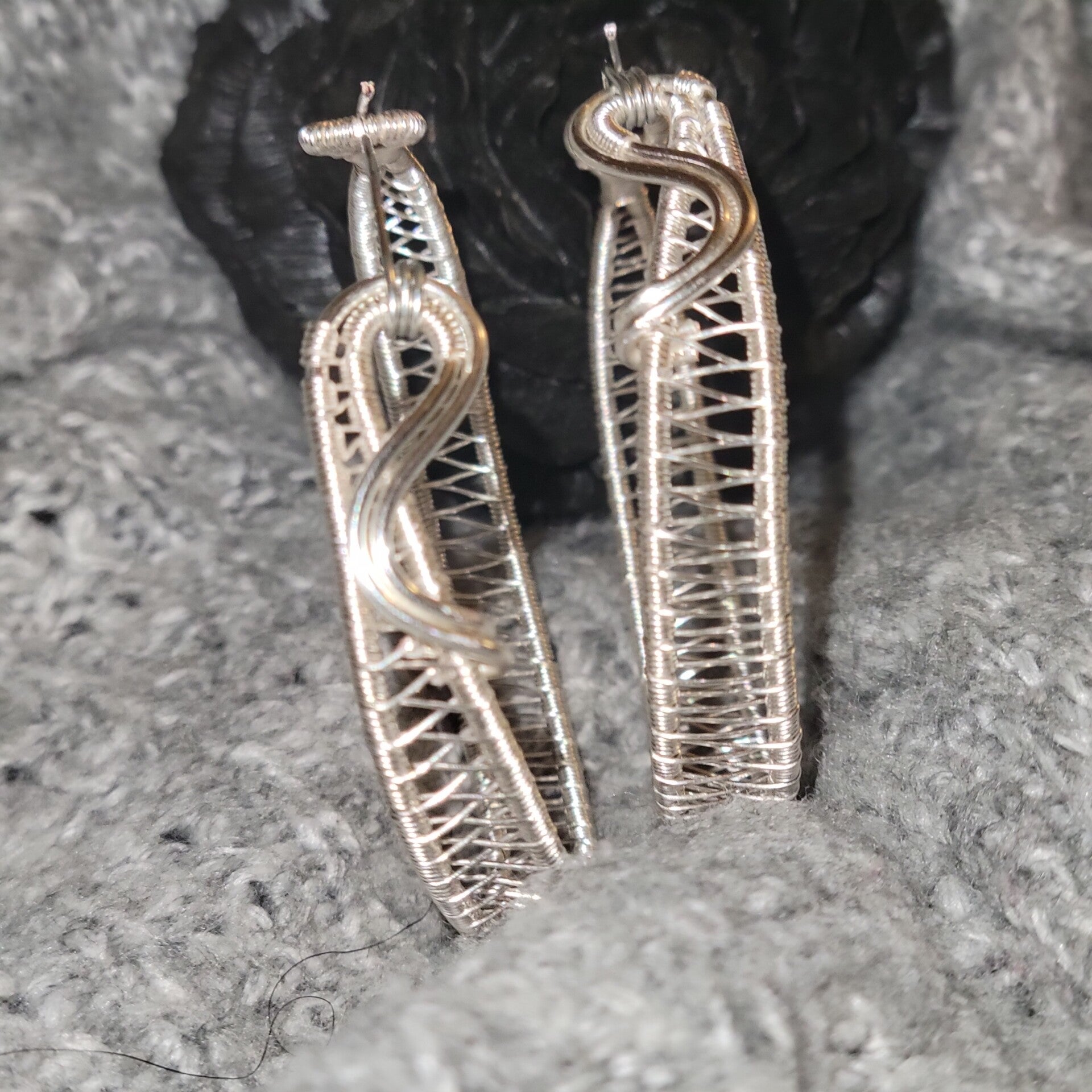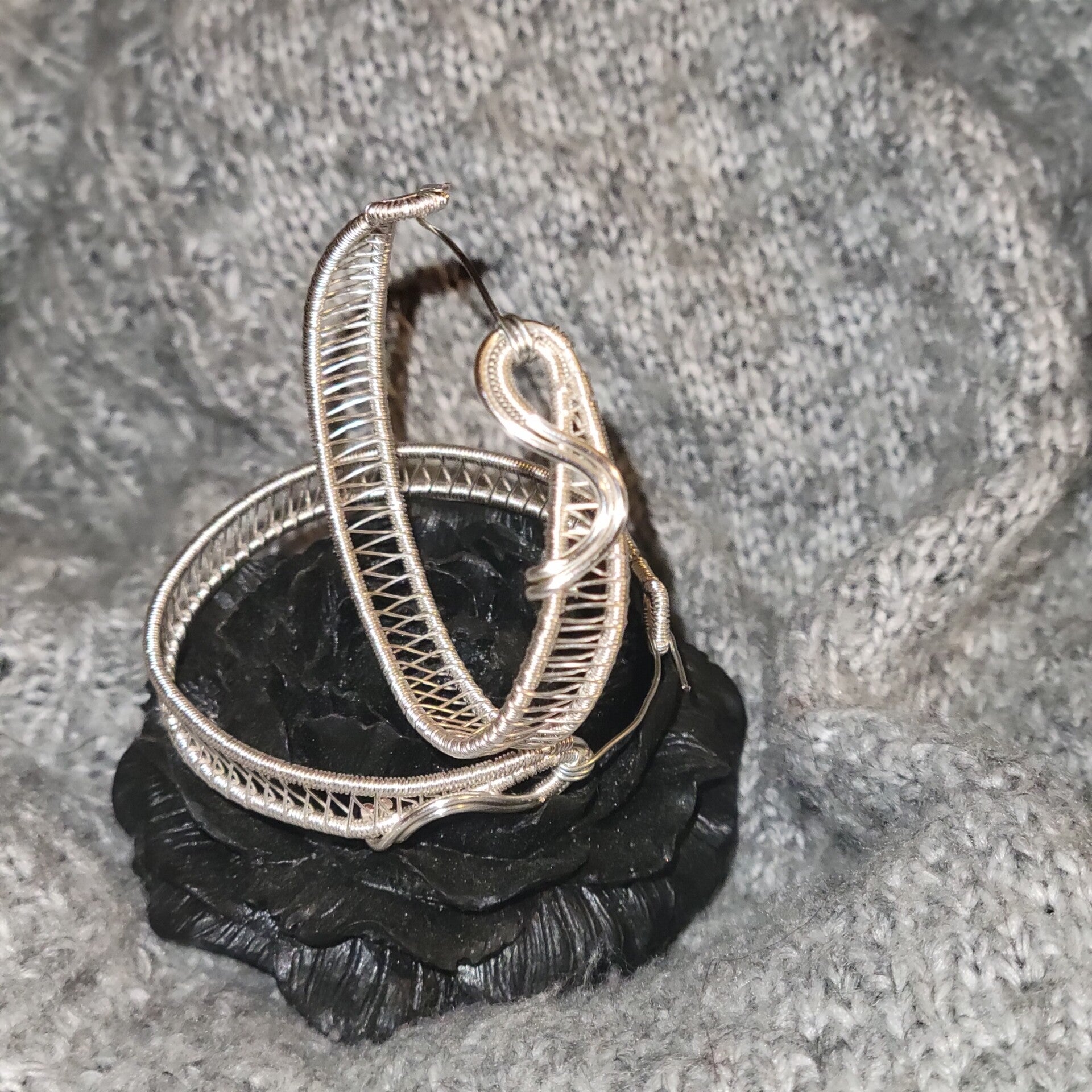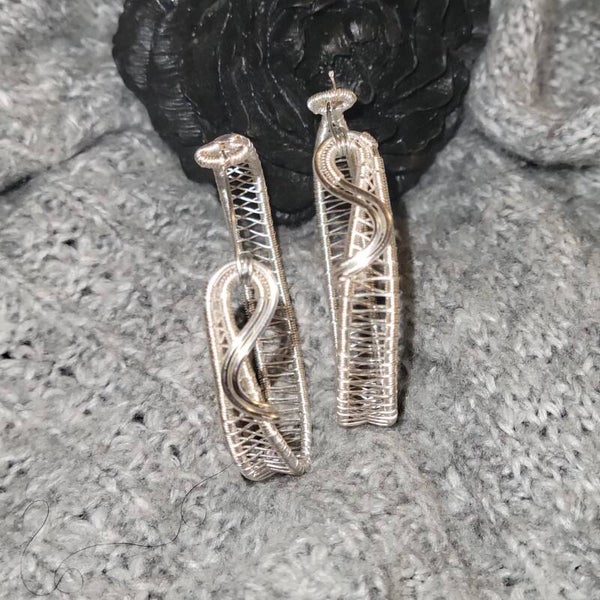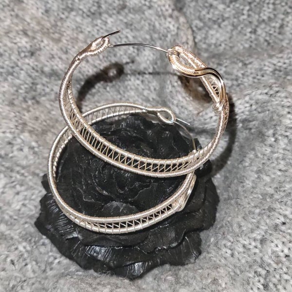 Silver coated Copper wrapped hoop earrings