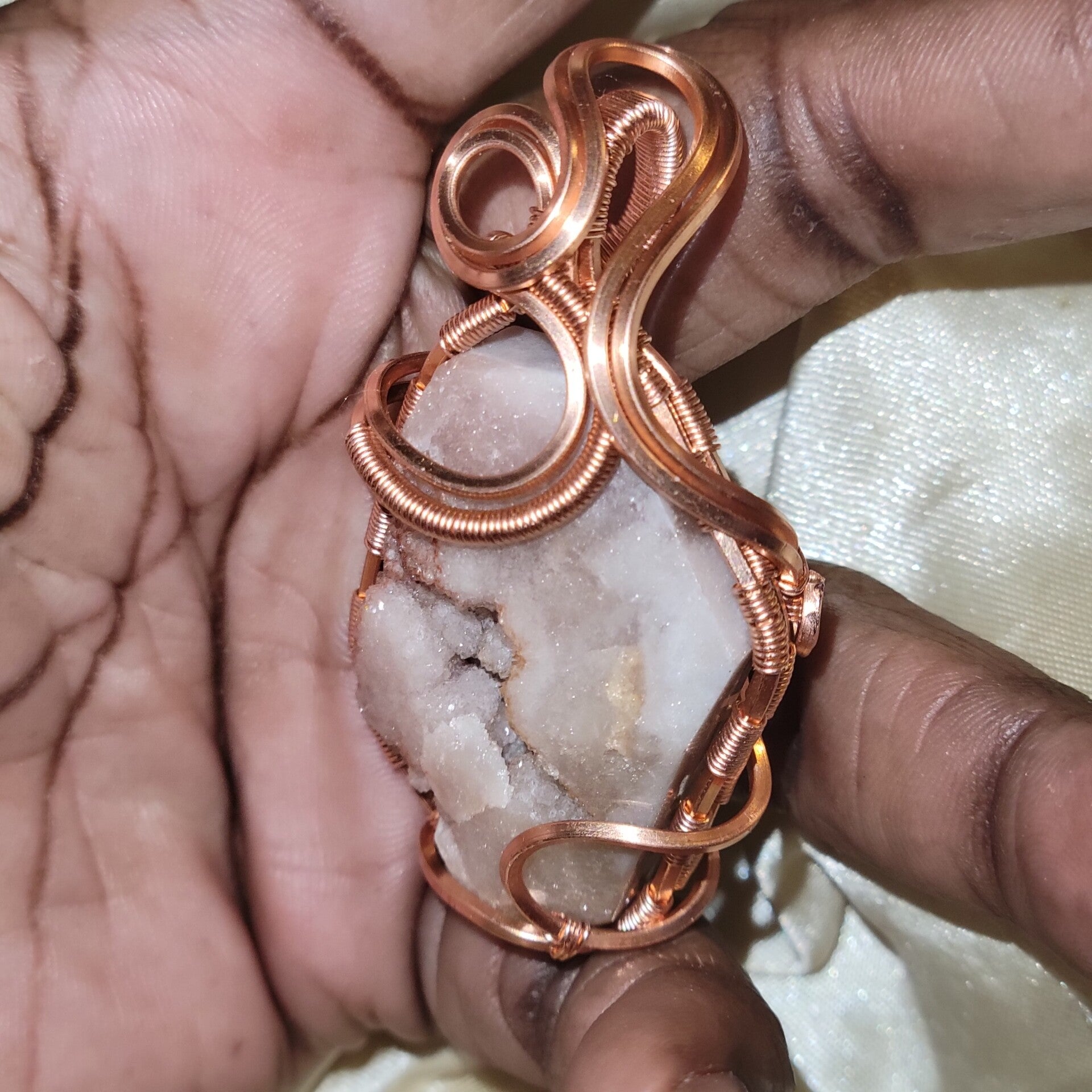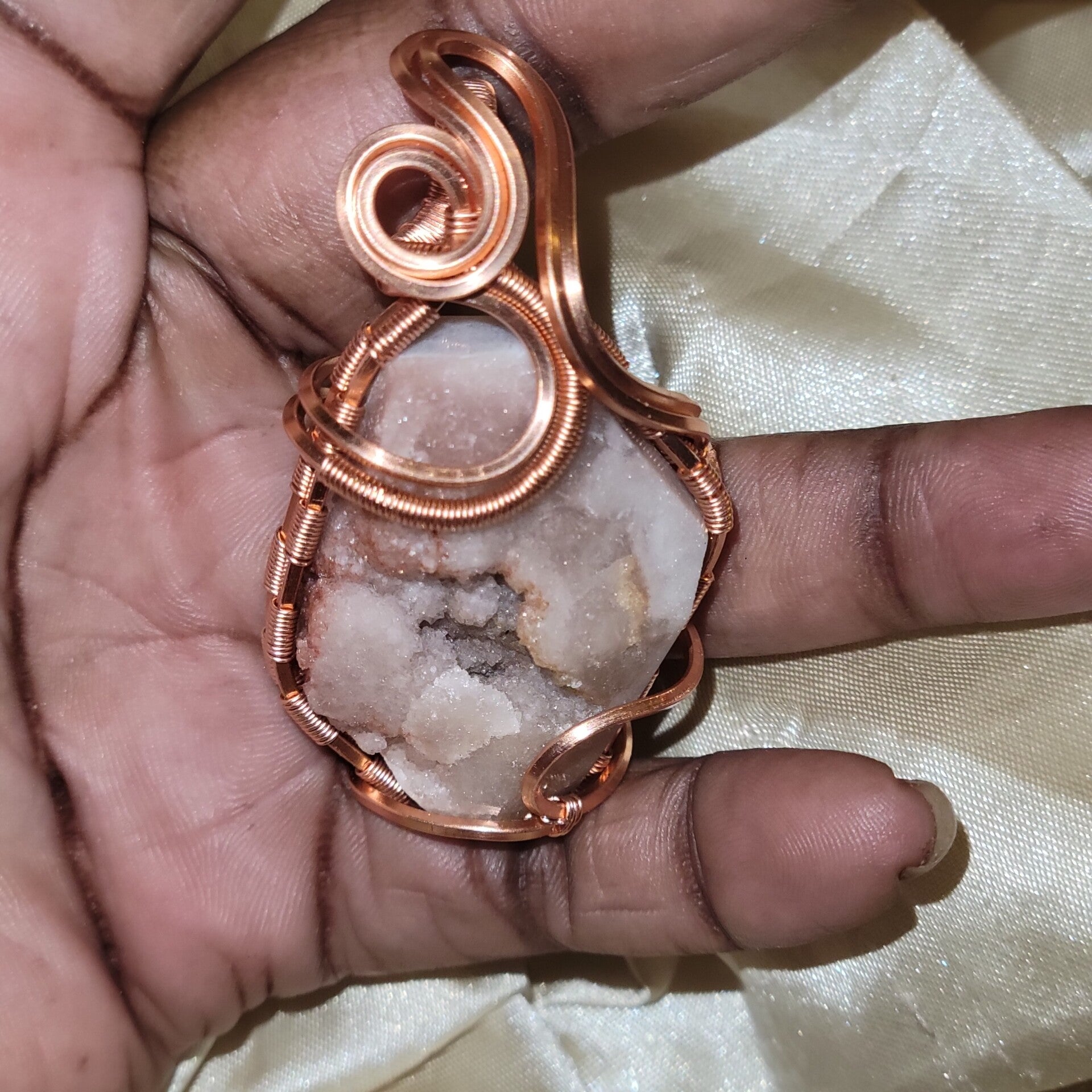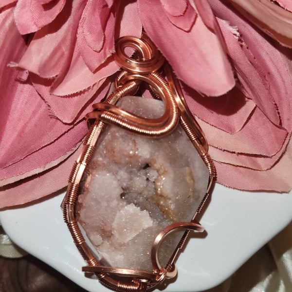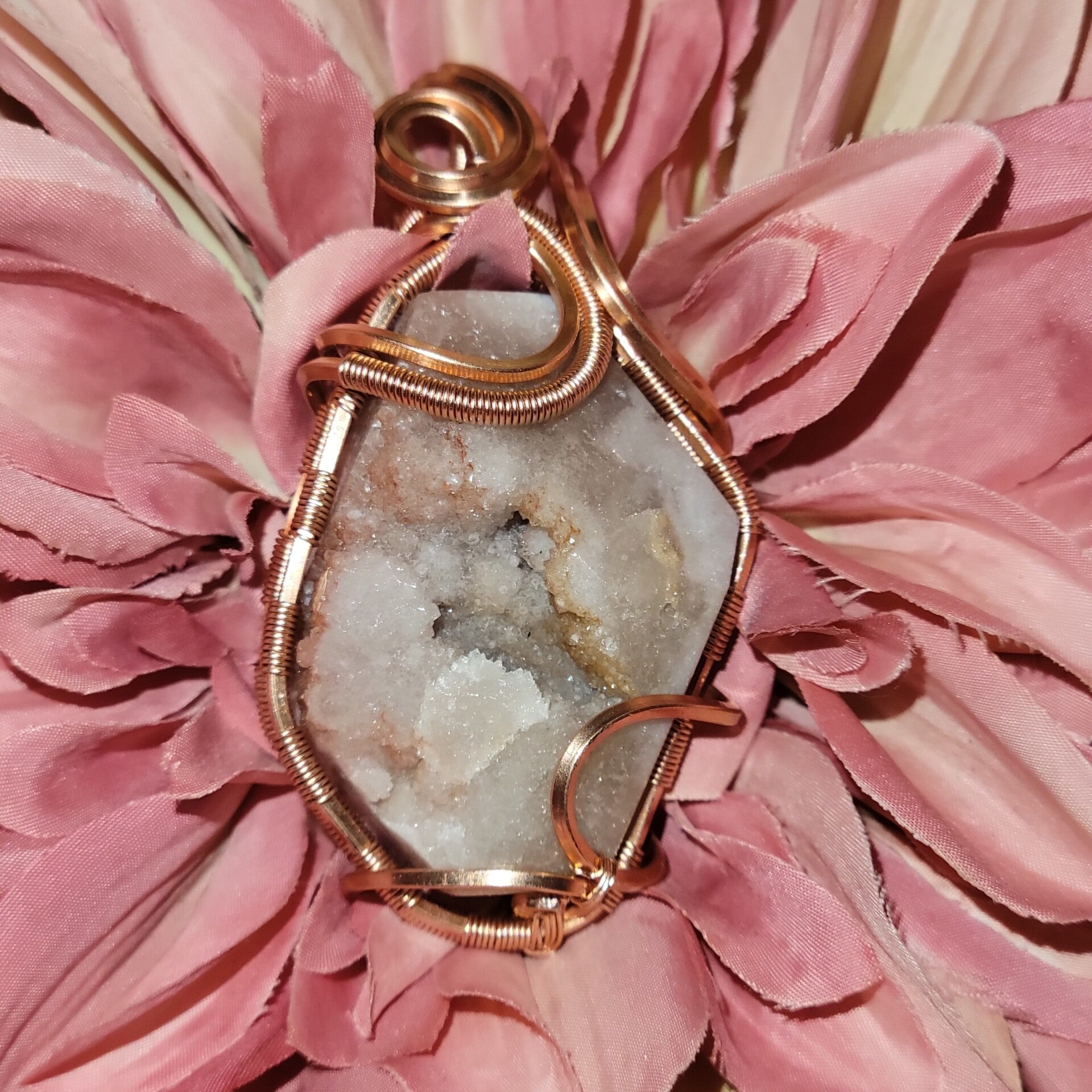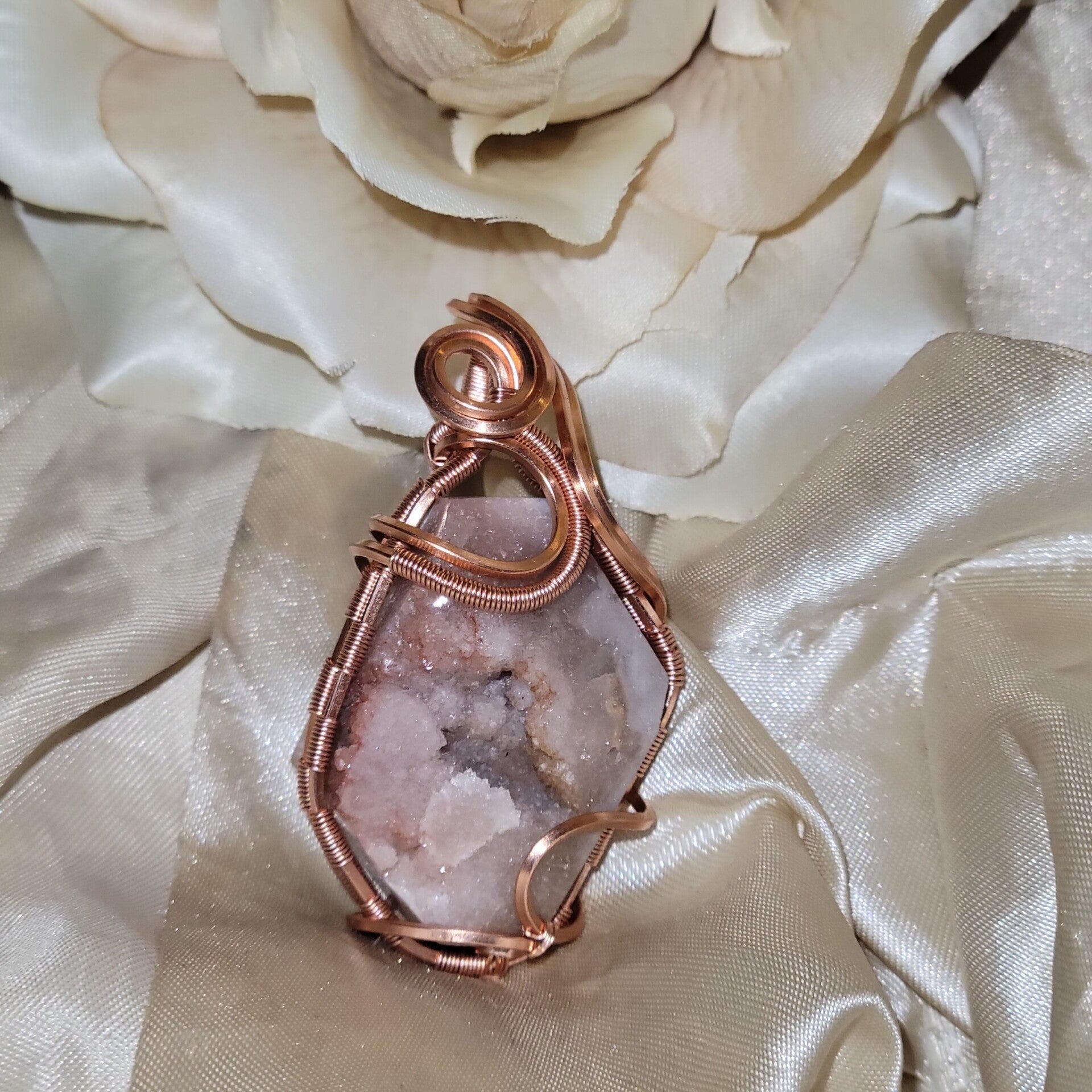 Copper wrapped Sparkling Pink Amethyst Pendant