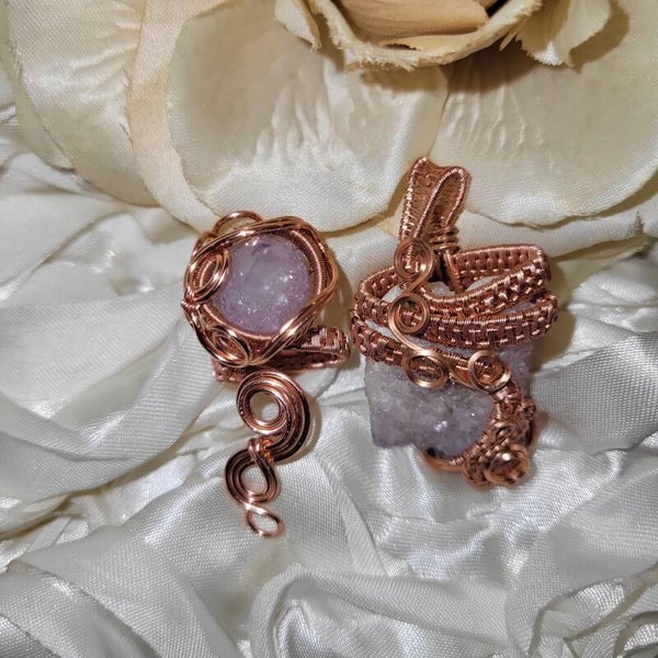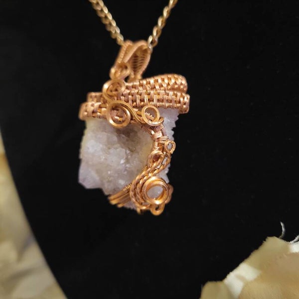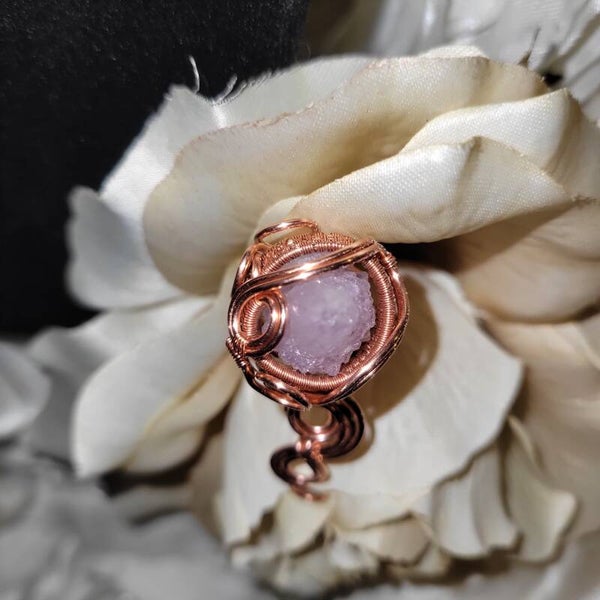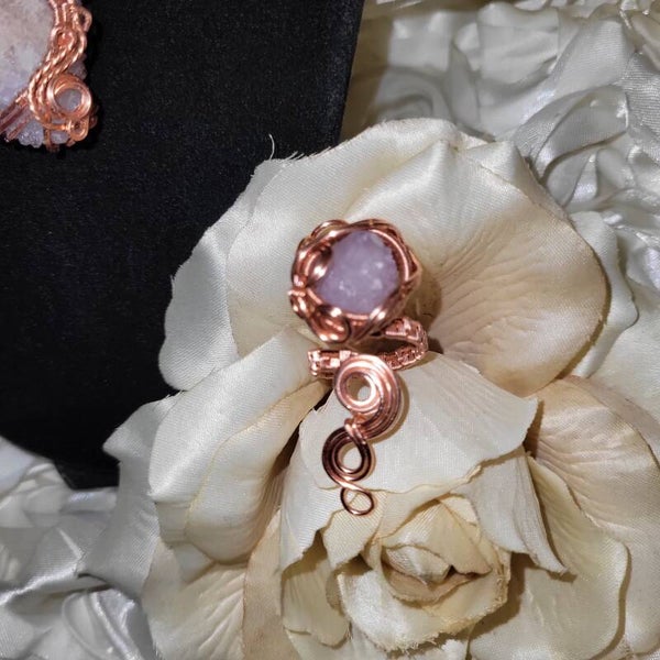 Copper wrapped Spirit Quartz Pendant with adjustable ring