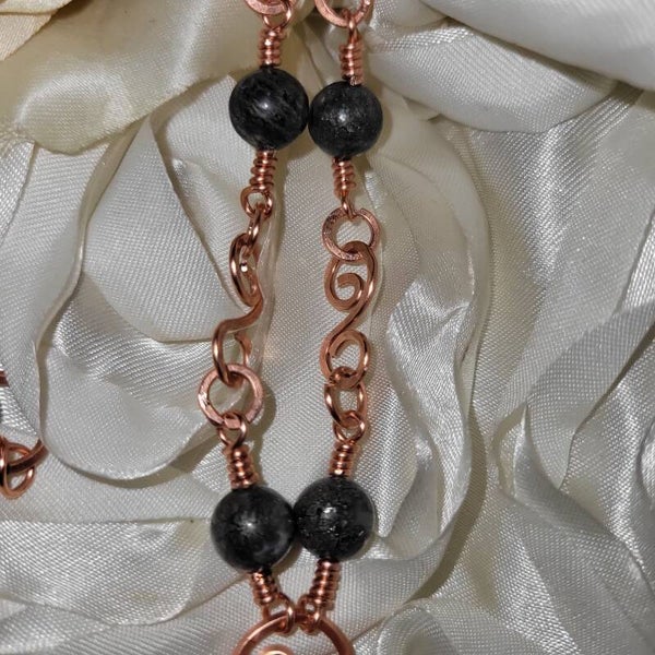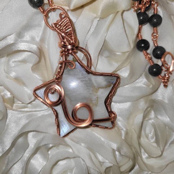 Copper wrapped Moonstone star adorn with Marcasite beads