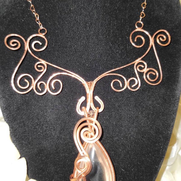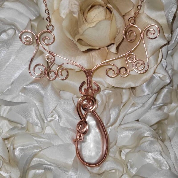 Copper wrapped Lemurian Quartz Necklace