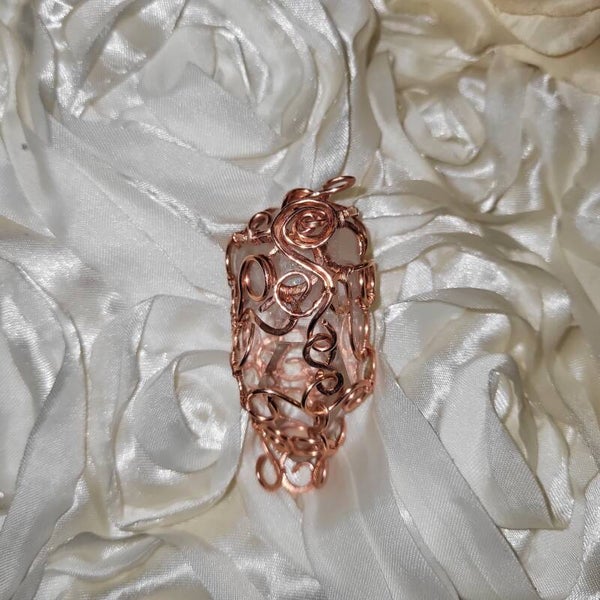 The artistic copper weaving encasing this crystal is more than adornment — it is a sacred vessel. Copper conducts energy, connecting you to earth and ether alike, while the open, airy coils give the crystal space to “breathe” and radiate its energy fully.