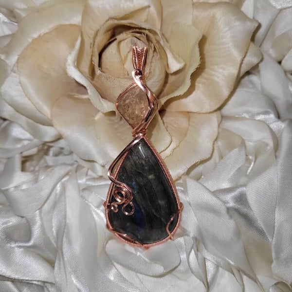 “Liora” – Labradorite & Herkimer Diamond Wrapped Pendant