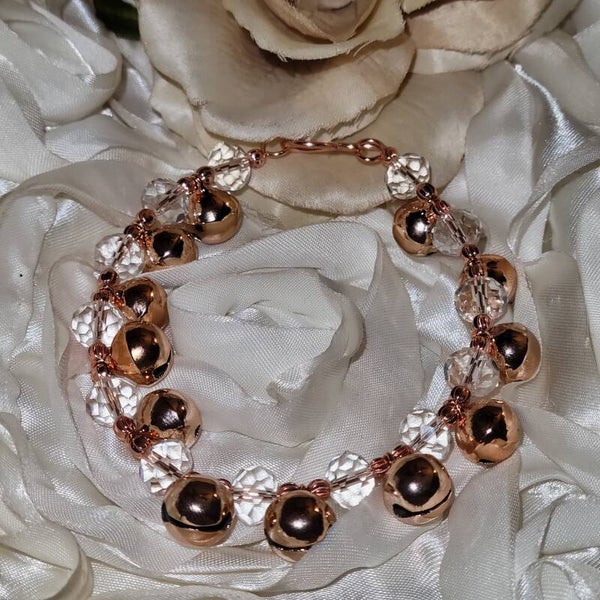 Soriel radiates soft feminine energy with copper beads, clear glass accents, and the protective chime of bells. Every bell carries the power to purify, shield against negativity, and restore inner clarity—like a spiritual reset with every movement. Clear glass beads symbolize purification, amplifying the energy of fresh starts and transparent intention. Combined with copper’s natural ability to cleanse and circulate energy, Soriel becomes a bracelet of clarity, protection, and presence. It calls you gently back to yourself, reminding you that your light is always within reach.