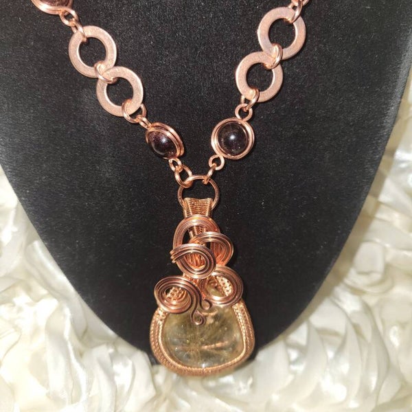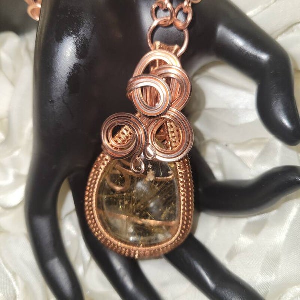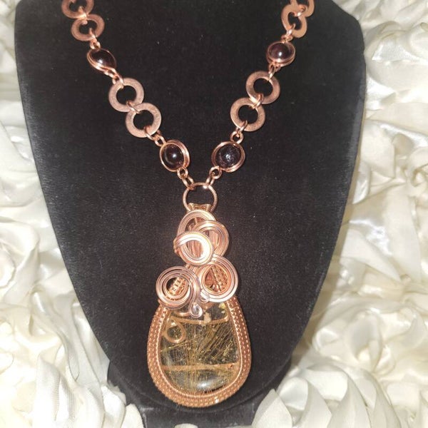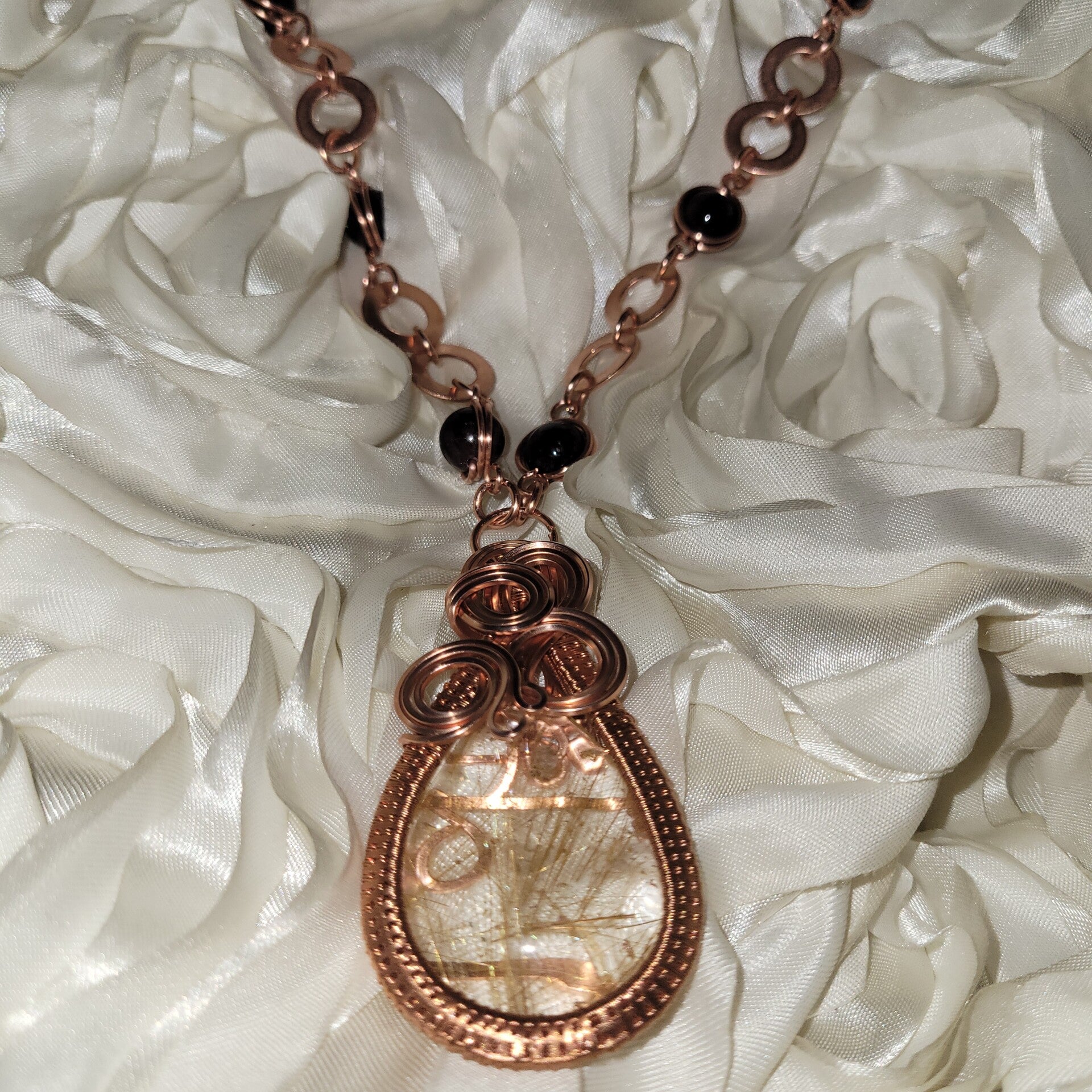 When I first held Aziraiya, she didn’t feel new —she felt returned, like something reborn from an ancient temple lined in gold and firelight. The golden rutile shimmered like threads of destiny, flickering behind the teardrop shape like a prophecy waiting to be understood. The garnet beads wrapped around her like royal seal-stones — deep red, warm, protective, ancestral. She is a Golden Thread Empress — a piece meant for the woman remembering who she is.
