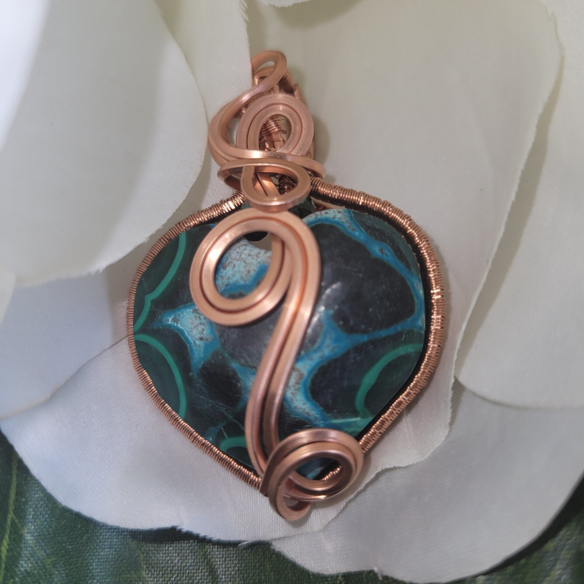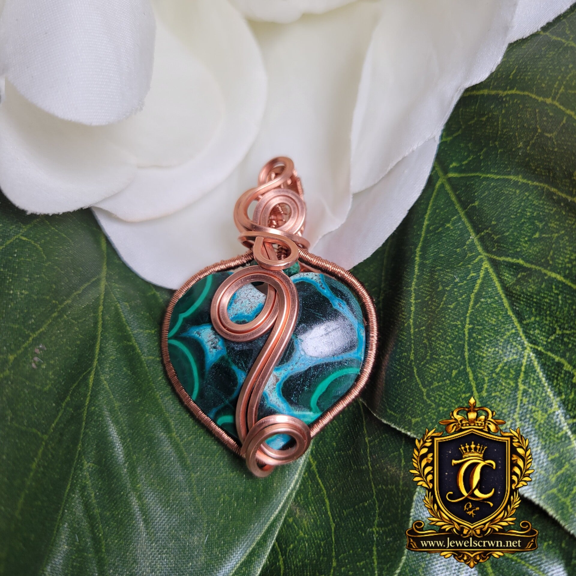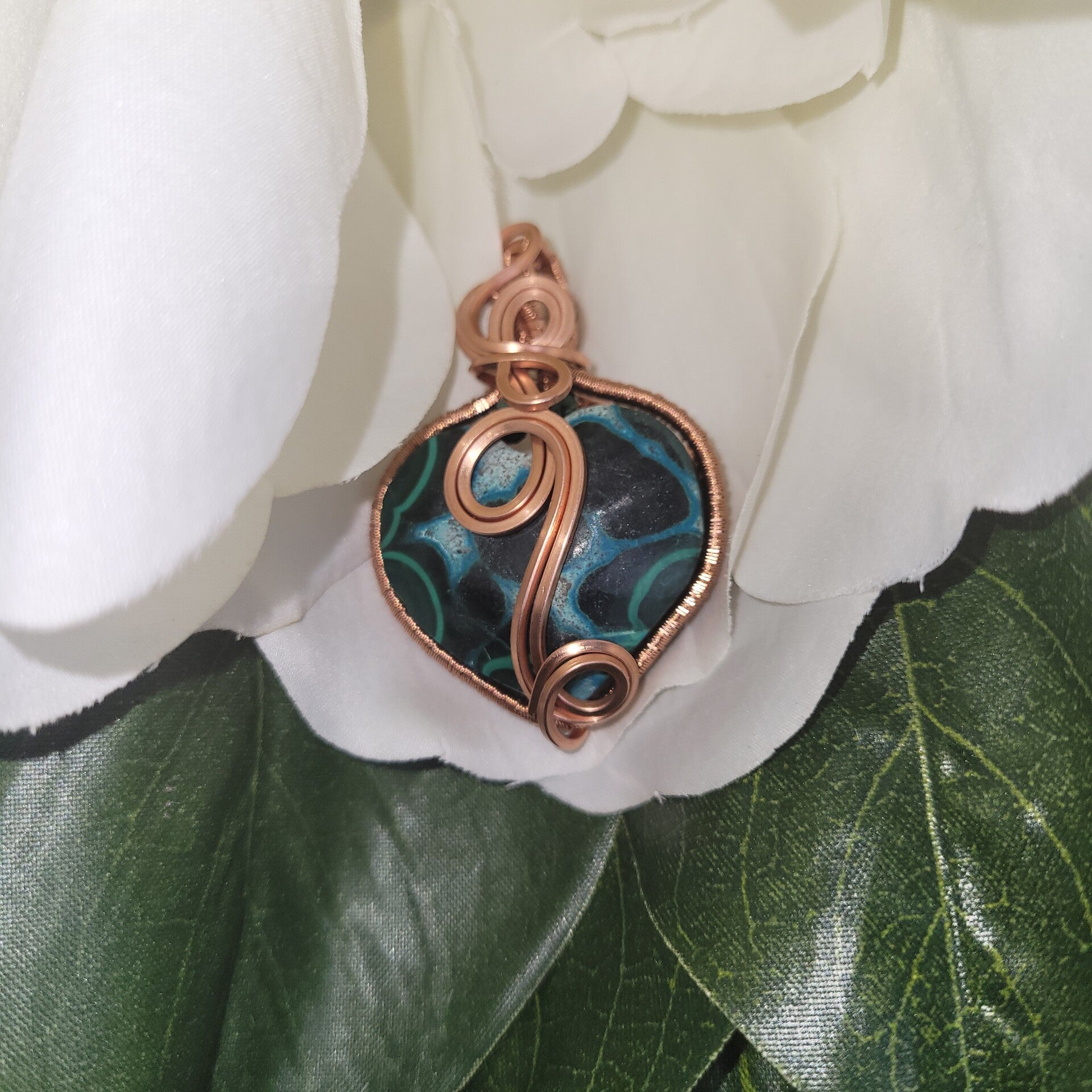 Hand-wrapped in pure copper, Myriellé carries an elegant spiral design flowing across the center of the heart — a sacred symbol of growth, healing, and the unfolding journey of the soul. Copper is known as a powerful energy conductor, amplifying the natural properties of the stones while encouraging the free movement of energy through the body.