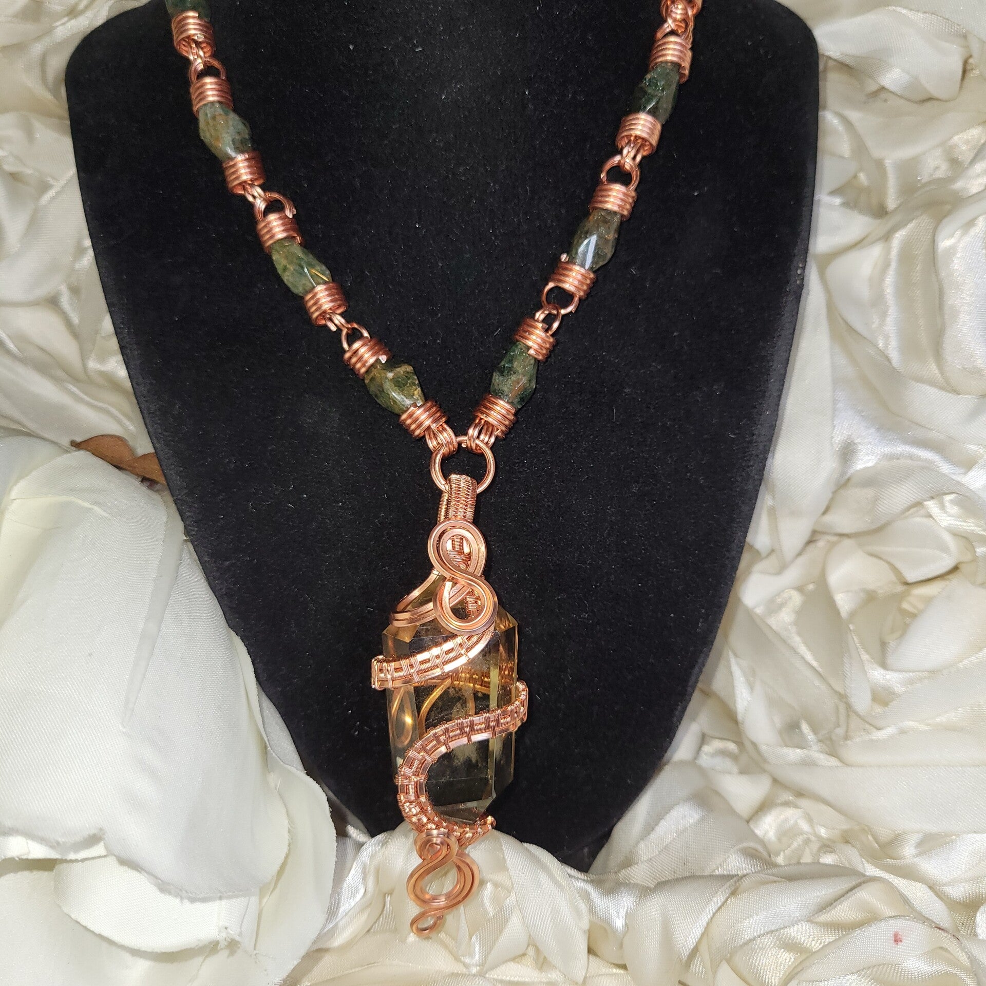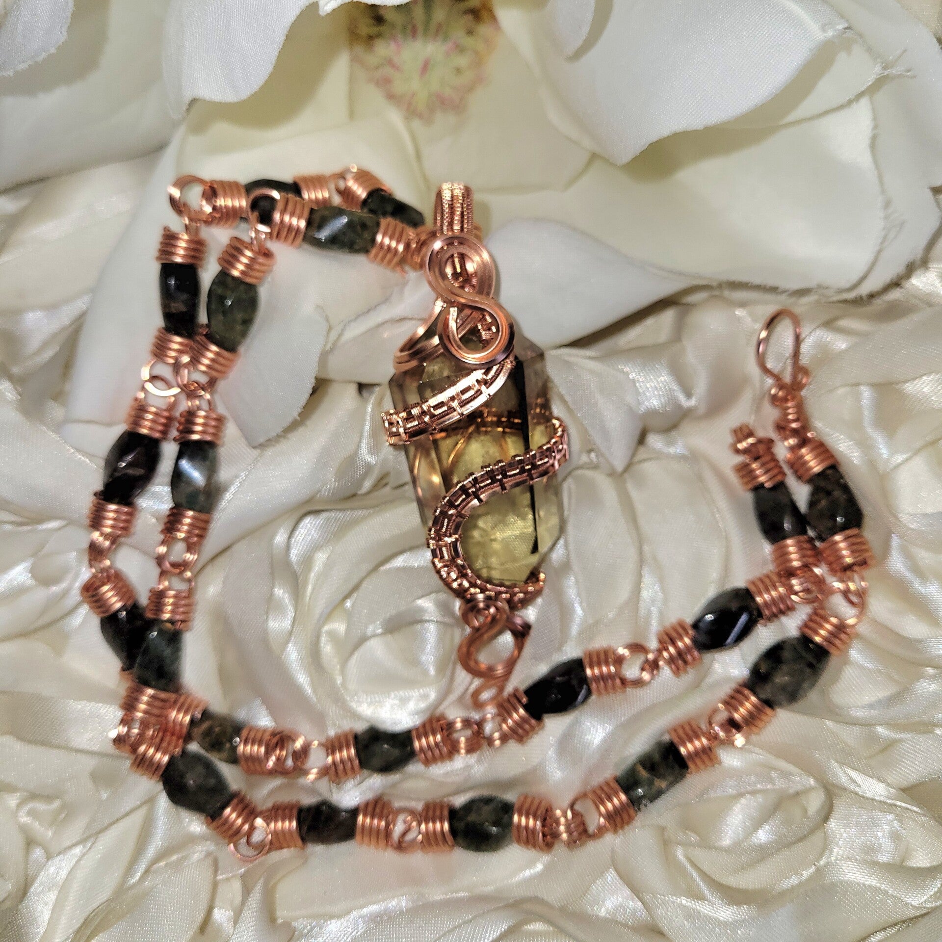 Citrine, known for its connection to abundance, confidence, and manifestation, activates forward movement and personal power. Paired with green garnet, a stone of grounding, regeneration, and heart-centered stability, this piece becomes more than a magnet for prosperity — it becomes an anchor for it.